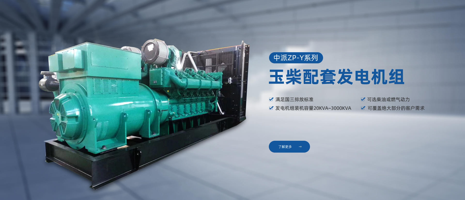 產(chǎn)品特點(diǎn):中派ZP-Y系列玉柴發(fā)電機(jī)組系列機(jī)組采用廣西玉柴機(jī)器股份有限公司生產(chǎn)的YC系列發(fā)動(dòng)機(jī),滿足國三排放標(biāo)準(zhǔn),可選柴油或燃?xì)鈩?dòng)力,發(fā)電機(jī)組裝機(jī)容量20KVA~3000KVA,可覆蓋絕大部分的客戶需求。
